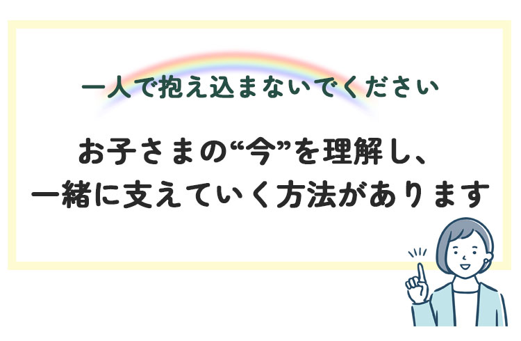 「こうなってしまったのは自分のせい」と悲観的に捉えてしまう親御さまも少なくありませんが、これらは改善に向けて足枷となってしまうことがあります。更生改善には親御さまの心のゆとりが不可欠。まずは親御さまのゆとりを取り戻しましょう。