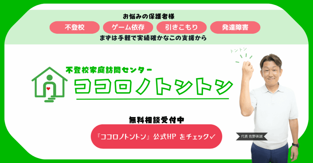 学力の補完を目的とした、不登校向けの家庭教師がこれにあたりますが、ココロノトントンのように不登校という問題に直接アプローチする支援も含まれます。